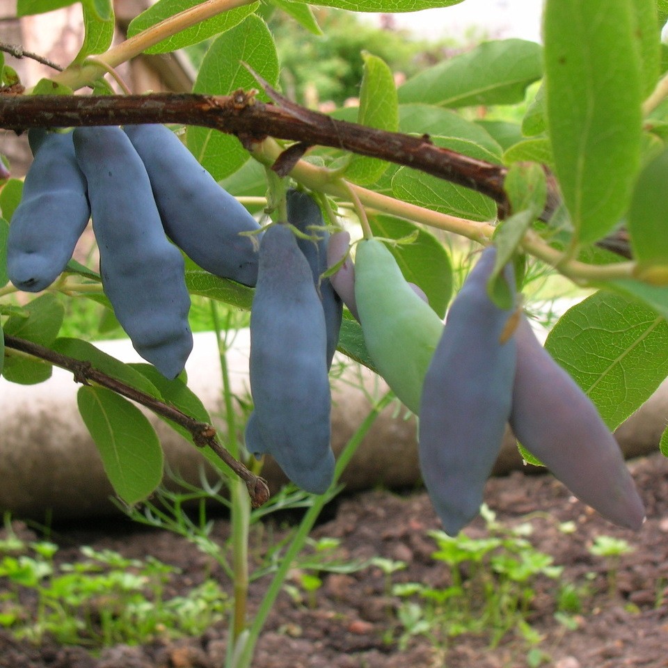 Ленинградский великан — чудесный сорт отечественной селекции, характеризуется крупными темно-синими ягодами длиной до 4 см. Средняя масса каждой — от 1,3 до 1,5 граммов. Форма удлиненная, с круглым основанием, плоской верхушкой. Покрытие сизым восковым налетом – среднее. Кроме того, неприхотливое и выносливое взрослое растение (при достижении возраста 5-6 лет) способно поразить своими урожаями. Один куст способен дать до 3 кг отборных спелых ягод; максимальный показатель – около 5 кг. Плоды созревают неравномерно, с середины июня по конец июля. На ветвях располагаются крупными гроздьями, по причине чего легко собираются. Осыпаемость слабая. В ягодах жимолости очень много витаминов и минералов. В ягодах содержатся витамины: В1, В2, В9, С, Р, А. В состав ягод входят лимонная, щавелевая, яблочная и янтарная кислоты, пектины, дубильные вещества. Наконец, очень много микроэлементов: калия — 70 мг, магния — 21 мг, фосфора — 35 мг, кальция — 19 мг, натрия — 35 мг, йода — 90 мкг. Многие витамины и элементы находятся в соединениях, усиливающих действие друг друга.
